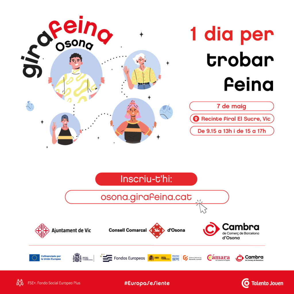 Translog Osona tornarà a ser present, per tercer any consecutiu, a la fira d’ocupació Girafeina, una mostra destinada a impulsar la inserció laboral de persones amb l’objectiu de captar i retenir el talent de la comarca. El certamen tindrà lloc el dijous 7 de maig al Recinte Firal El Sucre de Vic, de 9.15 a 13.00 h i de 15 a 17 h.